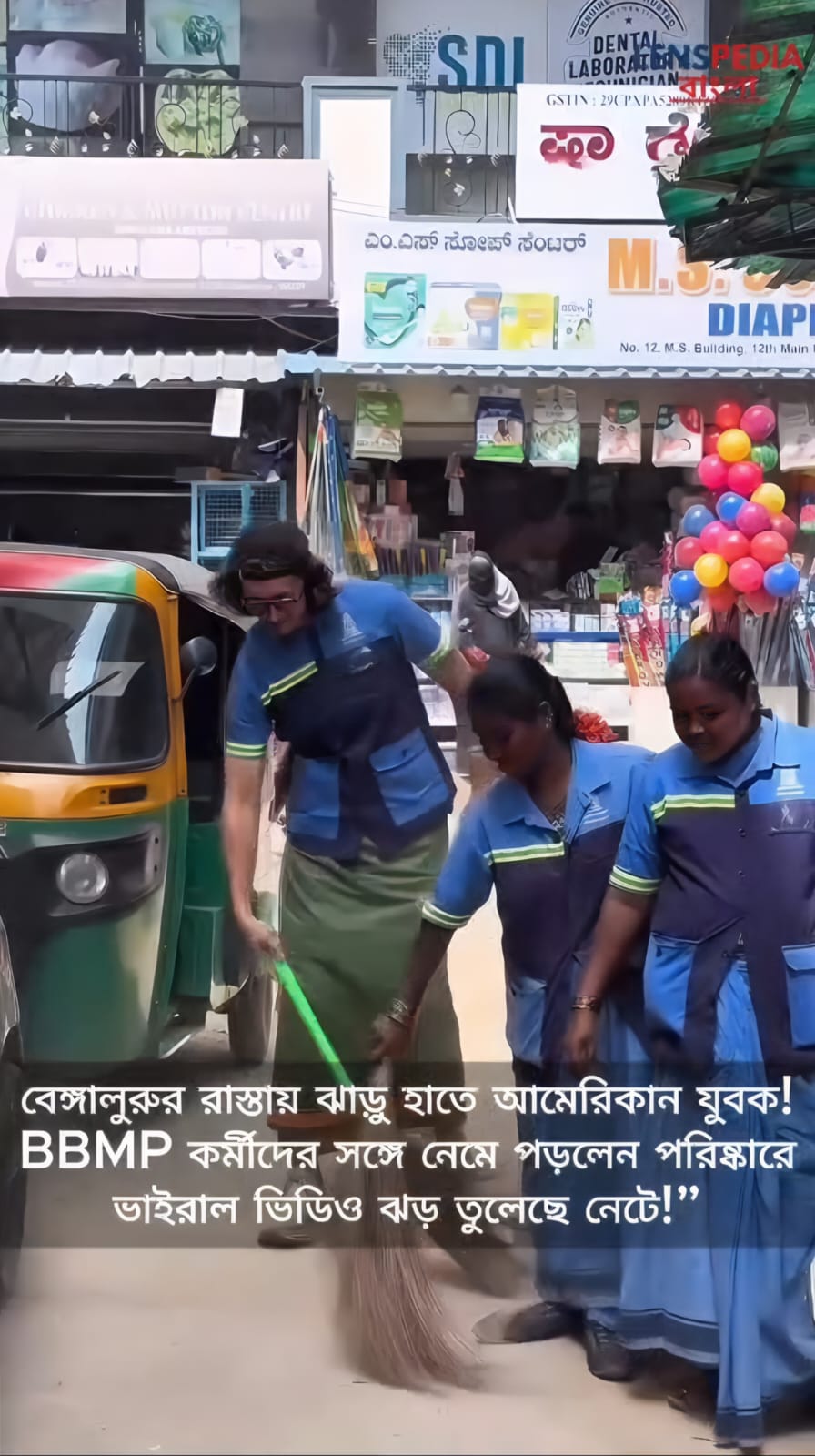 বেঙ্গালুরুর রাস্তায় ঝাড়ু হাতে আমেরিকান যুবক! ?? BBMP কর্মীদের সঙ্গে নেমে পড়লেন পরিষ্কারে — ভাইরাল ভিডিও ঝড় তুলেছে নেটে!”